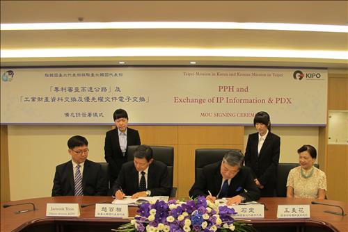 조백상 주타이베이한국대표와 스딩(石定) 주한 타이베이대표는 15일 대만 경제부에서 '특허심사하이웨이(PPH)'와 '지식재산(IP) 데이터 교환·우선권 서류 전자교환(PDX)' 업무 협력에 대한 MOU에 서명했다.