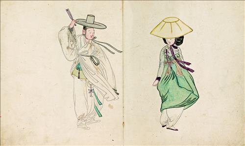 양옆으로 펼치면 세로 20㎝, 가로 32㎝ 크기의 이 화첩은 남녀의 개별 모습에서 시작한다.