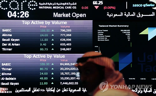(두바이=연합뉴스) 강훈상 특파원 = 사우디아라비아 증시(타다울)가 외국인 기관투자자에게 개방한 첫 거래일일 15일(현지시간) 소폭 하락했다.