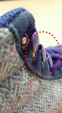 그러나 조사 결과, 해당 제품은 아일렛의 구조가 끝이 벌어진 개방형이어서 보행 중 반대쪽 신발끈이 걸리거나 아일렛끼리 걸려 넘어질 가능성이 있는 것으로 확인됐다.
