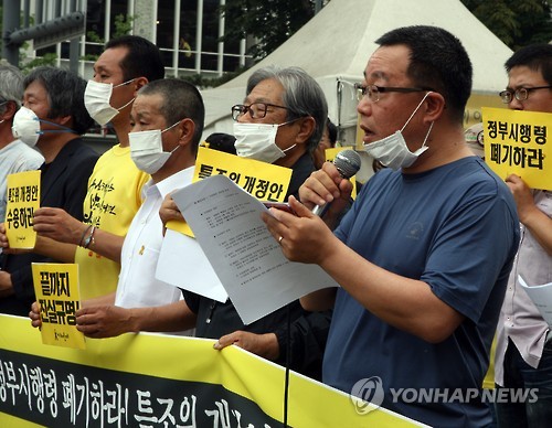 | △ '세월호 특별법 시행령 개정하라' (서울=연합뉴스) 최수향 기자 = 유경근 4.16 가족협의회 집행위원장이 16일 오전 서울 종로구 광화문 광장에서 세월호 특별법 시행령 개정을 촉구하는 기자회견을 하고 있다. 2015.6.16 scaaet@yna.co.kr |