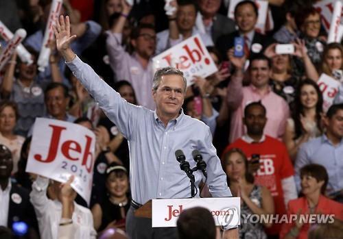 최근 허핑턴포스트의 여론조사 결과에 따르면 클린턴 전 장관은 60%의 지지율로 다른 후보들을 한참 따돌린 반면, 부시 전 주지사는 루비오 의원, 스콧 워커 위스콘신 주지사 등 다른 공화당 후보들과 마찬가지로 10% 안팎에 머물렀다.