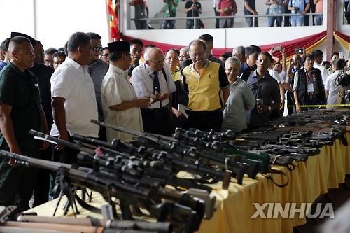 무기반납은 반군단체인 '모로이슬람해방전선'(MILF)이 지난해 3월 인접국 말레이시아의 중재로 17년 간의 협상 끝에 정부 측과 맺은 평화협정에 따른 것이다.