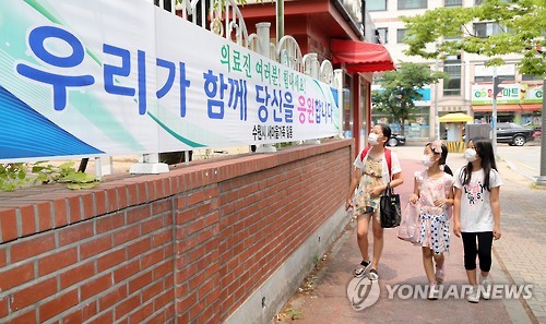 (수원=연합뉴스) 김인유 기자 = "의료진 여러분, 힘내세요, 우리가 함께 당신을 응원합니다"