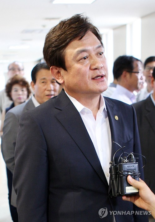 | △ 김병우 충북교육감 항소심서 직위 유지형 (청주=연합뉴스) 전창해 기자 = 대전고법 제7형사부(유상재 부장판사)는 17일 기부행위와 사전선거운동 혐의로 불구속 기소된 김병우 충북도교육감에 대해 무죄를 선고한 원심을 깨고 벌금 80만원을 선고했다. 사진은 선고 뒤 취재진 앞에서 입장을 밝히는 김 교육감. 2015.6.17 jeonch@yna.co.kr |