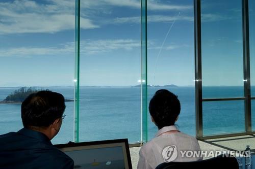 | △ 박근혜 대통령이 지난 3일 안흥시험장에서 우리 군이 성공적으로 개발완료한 사거리 500km 이상의 현무-2B 탄도미사일의 시험발사를 관람하고 있다. 연합뉴스 자료사진 |