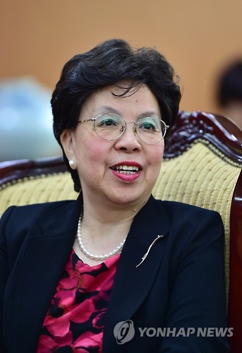 (서울=연합뉴스) 김태균 기자 = 마거릿 찬 세계보건기구(WHO) 사무총장은 국내 중동호흡기증후군(메르스) 바이러스가 감염력이 강한 방향으로 변이하지 않은 것으로 확인됐다고 18일 밝혔다.