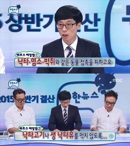 (서울=연합뉴스) 조민정 기자 = MBC TV '무한도전'이 19일 중동호흡기증후군(메르스) 때문에 때아닌 소동을 겪었다.