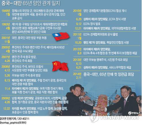 2014년 3월 대만 학생운동 단체가 중국과의 서비스무역협정 비준에 반대하며 입법원(국회) 본회의장을 점거해 장기 농성을 벌여 양안 교류가 주춤거리게 됐다.