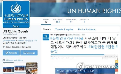 | △ 유엔 북한인권사무소, 트위터 개설(연합뉴스 자료사진) |
