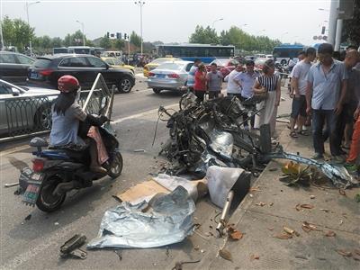 21일 중국 신경보(新京報)에 따르면전날 오후 1시53분께(현지시간) 난징시 친화이(秦淮)구의 교차로에서 BMW 차량이 과속으로 질주하다, 마주 오던 마쯔다 승용차와 충돌했다.