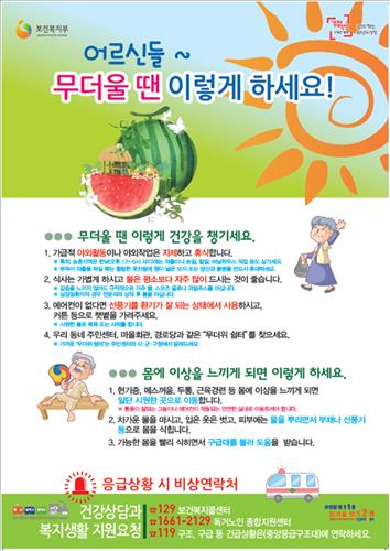 폭염대응 행동 요령을 담은 포스터를 경로당과 주민센터, 노인복지관 등에 배포할 예정이다.