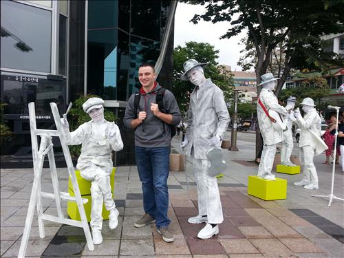 행위예술가 4명이 몸을 동상처럼 꾸며 움직이지 않다가 한 외국관광객이 관심을 보이자 갑자기 움직이는 퍼포먼스를 펼쳤다.