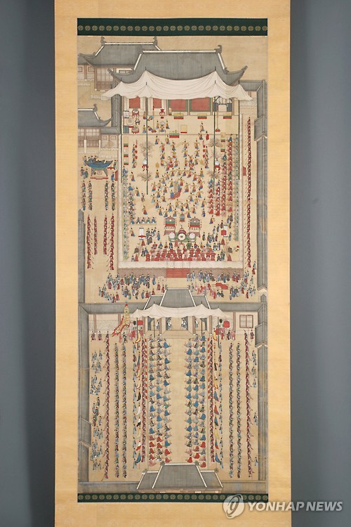 (서울=연합뉴스) 김태식 기자 = 문화재청은 1795년 정조의 현륭원(顯隆園) 행차 때의 행사 중 한 장면을 그린 봉수당진찬도(奉壽堂進饌圖)를 비롯한 4건을 국가지정문화재 보물로 지정·예고했다고 23일 밝혔다.