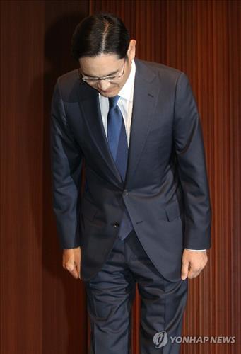 | △ (서울=연합뉴스) 임헌정 기자 = 삼성전자 이재용 부회장이 23일 오전 서울 서초동 삼성전자 서초사옥에서 중동호흡기증후군(메르스) 사태와 관련해 고개숙여 사과하고 있다. 이날 삼성은 삼성서울병원과 관련해 대국민 사과와 함께 그룹 차원의 지원 대책을 발표했다. 삼성은 삼성생명공익재단 산하 삼성서울병원에서 슈퍼전파자가 나와 메르스 2차 유행의 진앙이 됐고 급기야 병원 부분 폐쇄에까지 이르자 관련 대책을 논의해 왔다. 2015.6.23 kane@yna.co.kr (끝) |
