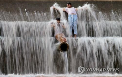 | △ 21일 파키스탄 수도 이슬라마바드 외곽의 강에서 시민들이 더위를 식히고 있다. (AP=연합뉴스) |