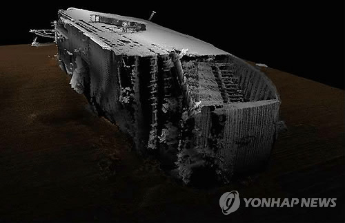 | △ 세월호 인양.. 이르면 9월 현장작업 착수 (서울=연합뉴스) 정부가 세월호 선체를 인양하기로 결정하고 이르면 9월부터 현장작업을 시작할 예정이다. 정부는 22일 정부서울청사에서 17개 부처로 구성된 중앙재난안전대책본부 회의를 열어 세월호 중앙사고수습본부인 해수부가 앞서 제출한 세월호 선체 인양 결정안을 심의하고 원안대로 확정했다. 김우남 국회 농림축산식품해양수산위원회 위원장이 세월호 참사 1주기를 하루 앞둔 15일 공개한 세월호 선체처리 기술검토 태스크포스(T/F)의 3차원 선체분석 영상. << 김우남 의원실 제공 >> photo@yna.co.kr |