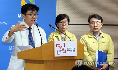 | △ '메르스 확진자 및 슈퍼전파자들 특성은' (세종=연합뉴스) 배재만 기자 = 이재갑 한림대병원 감염내과 교수가 23일 오전 정부세종청사 보건복지부 공용브리핑룸에서 열린 중앙메르스대책본부 정례브리핑에서 중동호흡기증후군(메르스) 확진자들에 대한 증상의 특성이나 슈퍼전파자들의 특성등에 대한 분석 결과를 밝히고 있다. 오른쪽은 권덕철 총괄반장과 정은경 현장점검반장. 2015.6.23 scoop@yna.co.kr http://blog.yonhapnews.co.kr/f6464 |