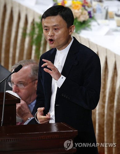 | △ epa04790934 Alibaba founder and executive chairman, Jack Ma, speaks at The Economic Club of New York, in New York, New York, USA, 09 June 2015. EPA/ANDREW GOMBERT |