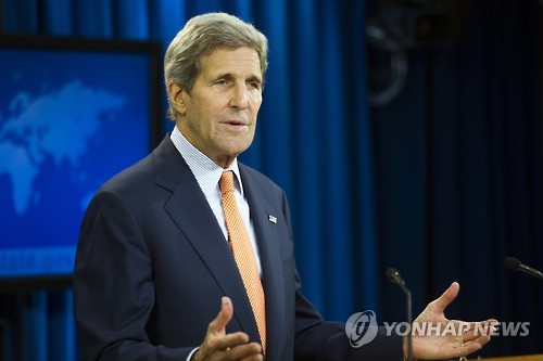 | △ 케리 장관이 25일(현지시간) 미 국무부 청사에서 '2014 국가별 인권보고서'를 발표하고 있다. (AP Photo/Cliff Owen) |