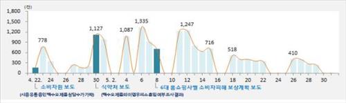 백수오 제품 관련 상담은 백수오 원료 제조·공급업체인 내츄럴엔도텍에 대한 식품의약품안전처의 재조사 결과가 발표된 4월 30일 이후 하루 최대 1천335건이 접수되는 등 증가 추세를 보였다.