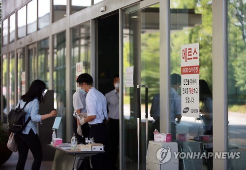| △ 대기 중인 병원 관계자들 (서울=연합뉴스) 박동주 기자 = 28일 중동호흡기증후군(메르스) 확진자가 전날 이후 추가로 발생하지 않은 가운데 강남구 일원동 삼성서울병원에서 관계자들이 출입자들의 체온 측정 등을 위해 대기하고 있다. |