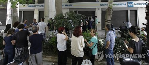 | △ (아테네 AP=연합뉴스) 그리스 은행들에 대한 가용 유동성을 제한하는 유럽중앙은행(ECB)의 결정과 그리스 정부의 은행 영업중단 및 예금인출 제한 조치 등이 28일(현지시간) 이어지면서 그리스의 디폴트(채무불이행)가 임박했다. 사진은 알렉시스 치프라스 총리의 구제금융 협상안 국민투표 실시 전격 선언 후 시민들이 예금을 인출하기 위해 아테네의 은행 현금자동입출금기(ATM) 앞에 장사진을 치고 있는 모습. marshal@yna.co.kr (끝) |