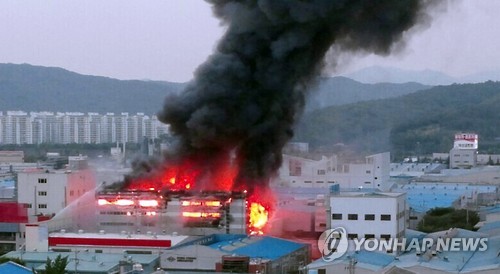 | △ 대구 검단공단에 불 (대구=연합뉴스) 김용민 기자 = 29일 오후 7시 10분께 대구시 북구 검단동 공단에서 불이 났다. 불이 나자 소방차 30여대가 출동, 진화 중이다. 2015.6.29 yongmin@yna.co.kr |