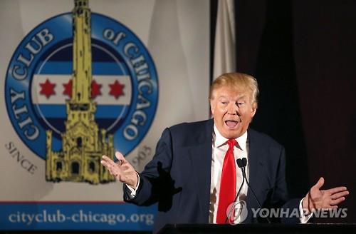 | △ 미국 대선 출마를 선언한 도널드 트럼프가 29일(현지시간) 시카고 시티클럽에서 연설하고 있다. (AP=연합뉴스) |