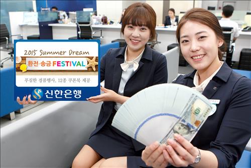 (서울=연합뉴스) 고동욱 기자 = 신한은행은 여름 해외여행 성수기를 맞아 환전·송금 고객에게 경품과 쿠폰 등을 제공하는 이벤트를 연다.