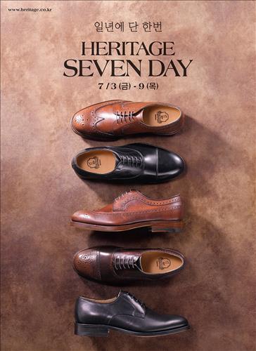 (서울=연합뉴스) 고유선 기자 = 금강제화의 수제화 브랜드 헤리티지는 3∼9일 전 품목을 할인 판매하는 '헤리티지 세븐데이' 행사를 연다고 1일 밝혔다.
