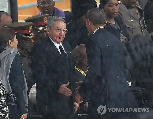 오바마 대통령과 라울 카스트로 쿠바 국가평의회 의장이 지난 2013년 12월10일 남아프리카공화국에서 열린 넬슨 만델라 전 대통령 추모식에 나란히 참석해 악수를나눈 것은 양국의 관계 회복 실마리를 알리는 역사적 장면으로 평가받았다.