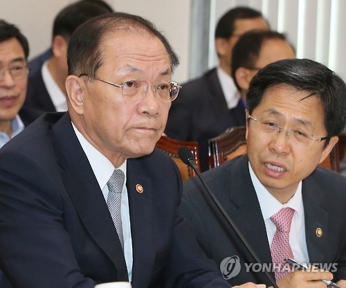 | △ 논의하는 황우여 교육부 장관과 김재춘 차관 (서울=연합뉴스) 진성철 기자 = 황우여 교육부 장관이 1일 국회 교육문화체육관광위원회 전체회의에서 김재춘 차관과 논의하고 있다. |