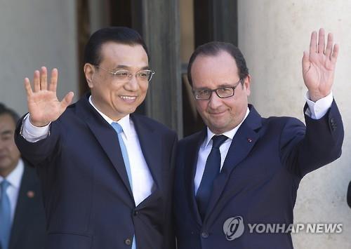 중국은 전날 '2030년까지 온실가스 감축목표' 방안을 유엔에 제출했으며 리 총리는 이를 올랑드 대통령에게 설명했다.
