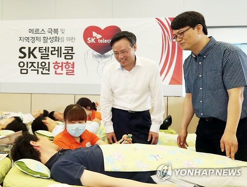 (서울=연합뉴스) 현윤경 기자 = SK텔레콤[017670]이 중동호흡기증후군(메르스)으로 인한 헌혈 부족 현상을 타개하기 위해 2일부터 본사와 자회사에서 헌혈 행사를 연다.