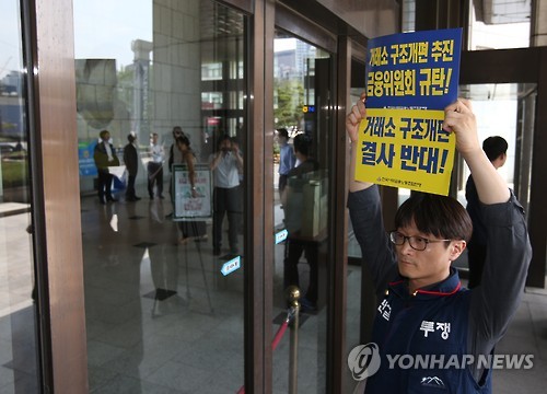 (서울=연합뉴스) 강종훈 기자 = 한국거래소 노동조합은 2일 거래소의 지주회사 전환이 비효율성을 키우고 불필요한 사회적 갈등을 가져올 것이라며 철회를 요구했다.