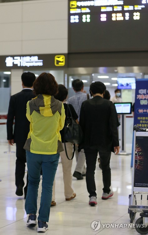 | △ (제주=연합뉴스) 박지호 기자 = 중국 연수 중 불의의 사고로 숨진 제주도청 조영필 사무관의 유가족들이 중국 선양행 항공기에 탑승하기 위해 2일 오후 제주국제공항 출국장으로 들어가고 있다. 2015.7.2 jihopark@yna.co.kr |