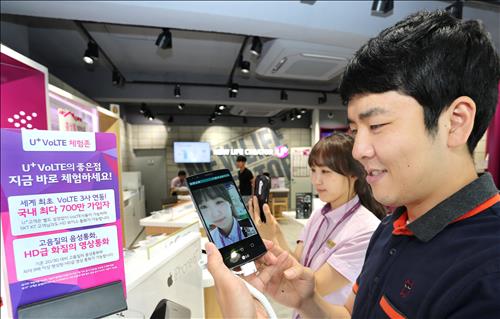 (서울=연합뉴스) 한지훈 기자 = LG유플러스[032640]는 지난달 30일부터 전국에서 운영한 LTE 기반 음성통화(VoLTE) 체험 매장에 소비자 500여명이 방문해 호응도가 높았다고 3일 밝혔다.