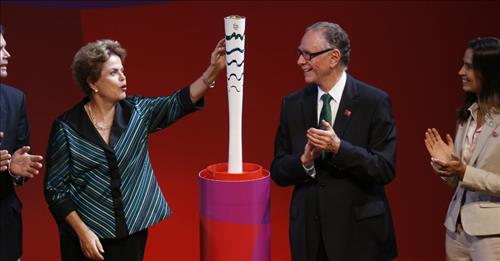 브라질올림픽위원회는 3일(현지시간) 브라질리아에서 지우마 호세프 대통령과 카를루스 아르투르 누스만 브라질올림픽위원장 등이 참석한 가운데 리우 올림픽 성화를 소개했다.
