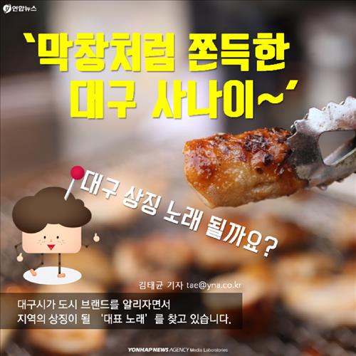 (서울=연합뉴스) 전승엽·김태균 기자 = 대구시가 지역의 상징이 될 '대표 노래'를 찾고 있다. 제2의 '부산 갈매기'가 탄생할 수 있을지 기대해 보자.