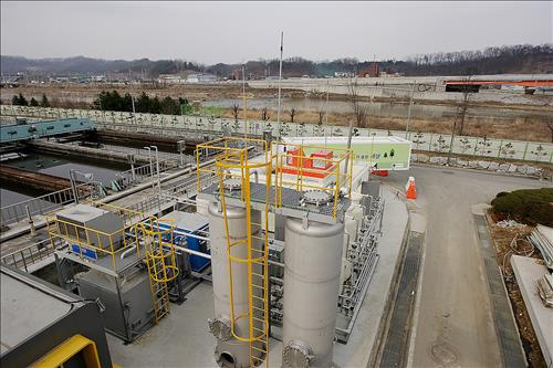 | △ 현대건설이 강원도 원주에 2013년 완공해 운영중인 원주 하수처리장 옆의 바이오가스 정제시설 전경. (사진 현대건설 제공) |