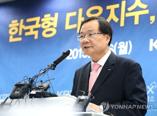 | △ 최경수 이사장, KTOP30 지수발표 기자회견 참석 (서울=연합뉴스) 최경수 한국거래소 이사장이 6일 서울 여의도 한국거래소에서 열린 'KTOP 30(한국판 다우지수) 지수발표 기자회견'에 참석, 발언을 하고 있다. (한국거래소 제공) |