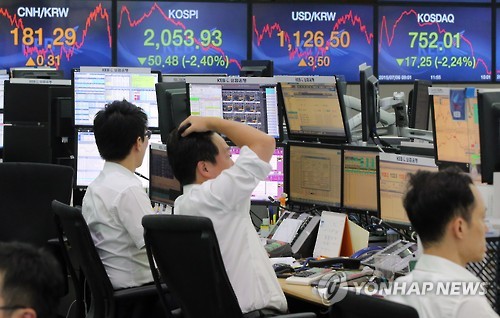 이날 코스피는 전 거래일보다 2.40%(50.48포인트) 내린 2,053.93에 장을 마쳤다.