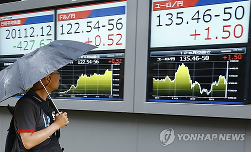 | △ '그렉시트'로 갈까… (홍콩 AP=연합뉴스) 국민투표에서 국제 채권단의 긴축 협상안을 거부함으로써 유로존 탈퇴(그렉시트) 가능성 등 그리스 위기가 고조되면서 6일(현지시간) 아시아 증시가 폭락세를 면치 못했다. 사진은 이날 하오 도쿄에서 한 남성이 증권사 전광판에 표시된 주가지수와 달러, 유로화 시세 등의 그래프를 보고 있는 모습. bulls@yna.co.kr |
