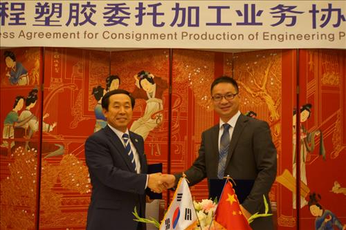 코오롱플라스틱은 중국 장쑤(江蘇)성 옌청(鹽城)시에 있는 '장쑤한수(江蘇江韓塑) 신재료유한공사'와 엔지니어링 플라스틱 컴파운드 위탁생산을 위한 업무협약을 맺었다고 8일 밝혔다.
