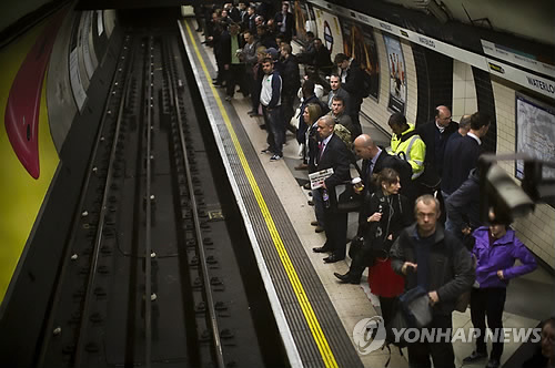 (런던 AFP=연합뉴스) 런던 지하철이 8일 오후 6시 30분(현지시간) 파업에 돌입했다. 이는 2002년 이래 처음 있는 일이다.
