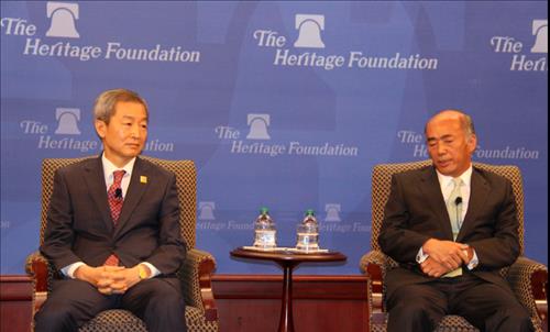 안호영 주미대사와 사사에 겐이치로 주미 일본대사는 8일(현지시간) 미국 헤리티지재단에서 열린 '대사들의 대화' 세미나에서 일본 산업혁명시설의 유네스코 등재에 대한 평가와 후속 조치를 놓고 첨예한 시각차를 드러냈다.
