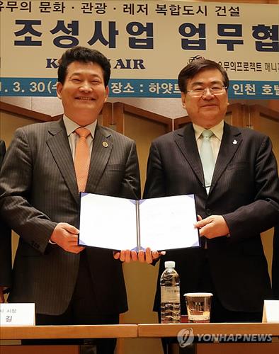당시 협약 체결식에는 왕산레개저개발 모회사인 대한항공의 조양호 회장과 송영길 전 인천시장이 직접 참석하기도 했다.