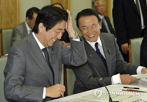 | △ 아베 총리(왼쪽)와 아소 부총리(AP.연합뉴스.자료사진) |
