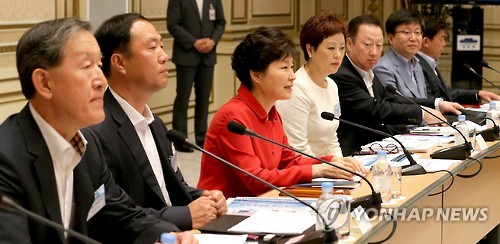 | △ 모두발언하는 박 대통령 (서울=연합뉴스) 백승렬 기자 = 박근혜 대통령이 9일 청와대에서 열린 제8차 무역투자진흥회의에서 모두발언하고 있다. 이날 회의에는 정부 관계자와 경제5단체장, 경총 부회장, 제조 관광 건설 기업대표 등 200여명이 참석했다. |